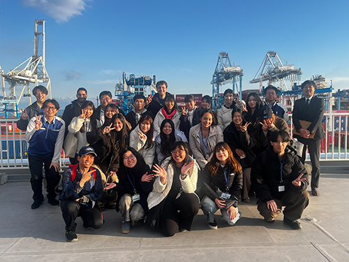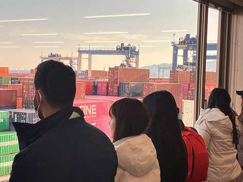 In the afternoon, the group visited Miho no Matsubara, a UNESCO World Heritage site, to understand the value of scenic resources and their connection to tourism. They also toured the Shimizu Port container terminal, learning how Suruga Bay's geographic advantages support international shipping and the regional economy.